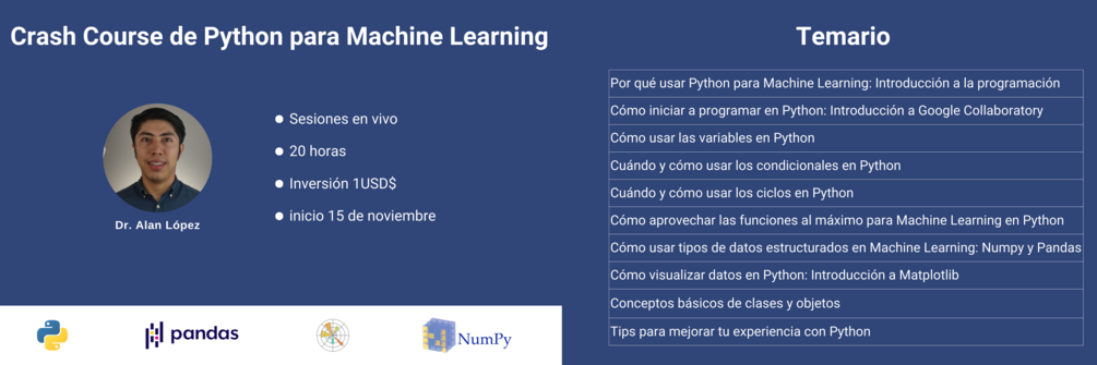Creé este programa de mentoreo porque creo en la importancia de mantenernos actualizados como desarrolladores. El Machine Learning se aplica en cada área del desarrollo que tú imagines: Videojuegos, Web, Ciberseguridad, entre otros. ¿La razón? El Machine Learning es una manera distinta de programar; de hecho la única para ciertos problemas complicados.